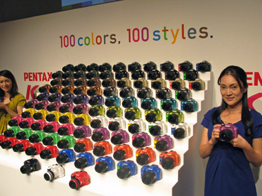 ペンタックスはデジタル一眼レフカメラ「K-x」で100種類のバリエーションから好みのカラーを選択できる、オーダーカラーシステム「PENTAX K-x 100colors,100styles」を開始する。9月17日より受注を開始する。